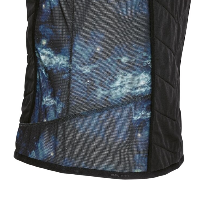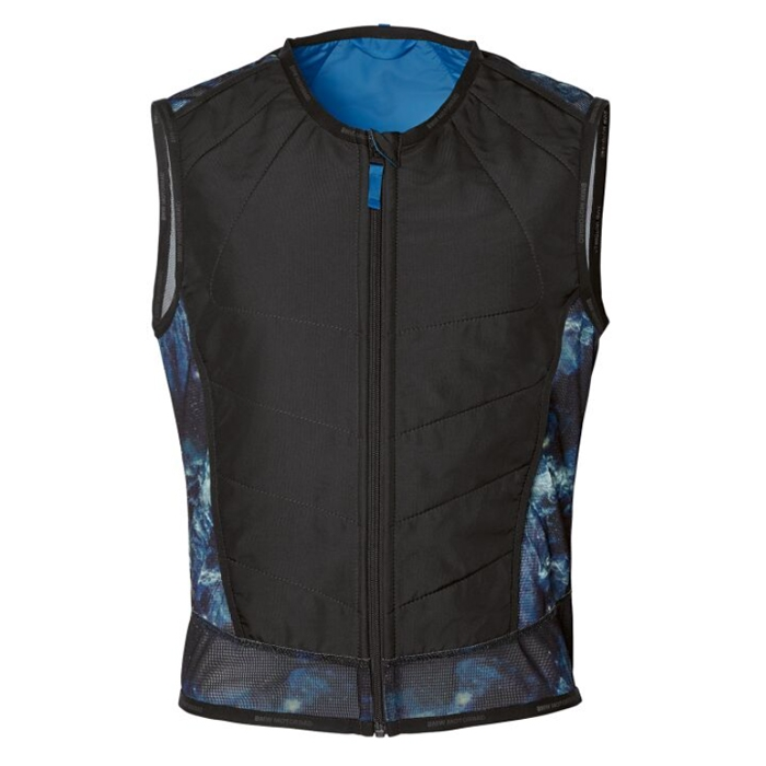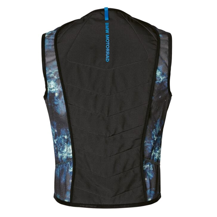 O colete BMW Cool Down destaca-se pela sua tecnologia de arrefecimento inovadora. Quando o colete está molhado ou húmido, o material HyperKewl™ nas faces dianteira e traseira retém a humidade e conserva-a até oito horas. Isto assegura um efeito de arrefecimento de 6 °C a 12 °C face à temperatura exterior, mantendo o vestuário completamente seco.