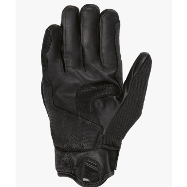 A palma é feita de couro de canguru, material conhecido por sua resistência e aderência, otimizando o controle sobre os comandos da motocicleta mesmo em condições extremas. O fechamento por velcro no punho assegura um ajuste firme, enquanto a alça com inserção em silicone facilita a colocação das luvas com praticidade.
